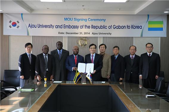 우리 학교와 주한 가봉 대사관이 MOU를 체결하고 상호 교류 협력을 확대키로 했다. 지난 31일 오전 율곡관 제1회의실에서 열린 MOU 체결식에서 안재환 총장과 Carlos Victor BOUNGOU 주한 가봉대사는 상호협력을 위한 양해각서에 서명하고 이를 교환했다. 이 자리에는 김병관 대외협력처장과 박만규 불어권협력센터장 겸 프랑코포니 전문 인력 양성사업단장(불어불문학과 교수), 강충권 한국불어불문학회장(불어불문학과 교수), 김용현 불어불문학과 학과장, 오수기 불어권협력센터 대외협력실장(물리학과 교수)도 함께 했다. 우리 학교 불어권협력센터 주도로 이루어진 이번 MOU를 계기로 양 측은 향후 인적·물적 교류를 비롯한 상호 협력 방안을 논의해 갈 예정이다. 그 첫 프로그램으로 대학특성화사업에 선정된 프랑코포니 전문 인력 양성사업단에서 가봉에 학생들을 파견할 계획. 또한 주한 가봉 대사 강연회와 가봉 외무부 고위 인사 초청 강연회 등이 예정되어 있다. 프랑코포니 전문 인력 양성사업단(단장 박만규 교수)은 지난해 6월 교육부 주도 대학특성화사업(University for Creative Korea, CK 사업)에 선정되어 프랑코포니 지역(프랑스어를 사용하고 있는 국가) 전문가 양성을 목표로 다양한 교육과정을 운영하고 있다.