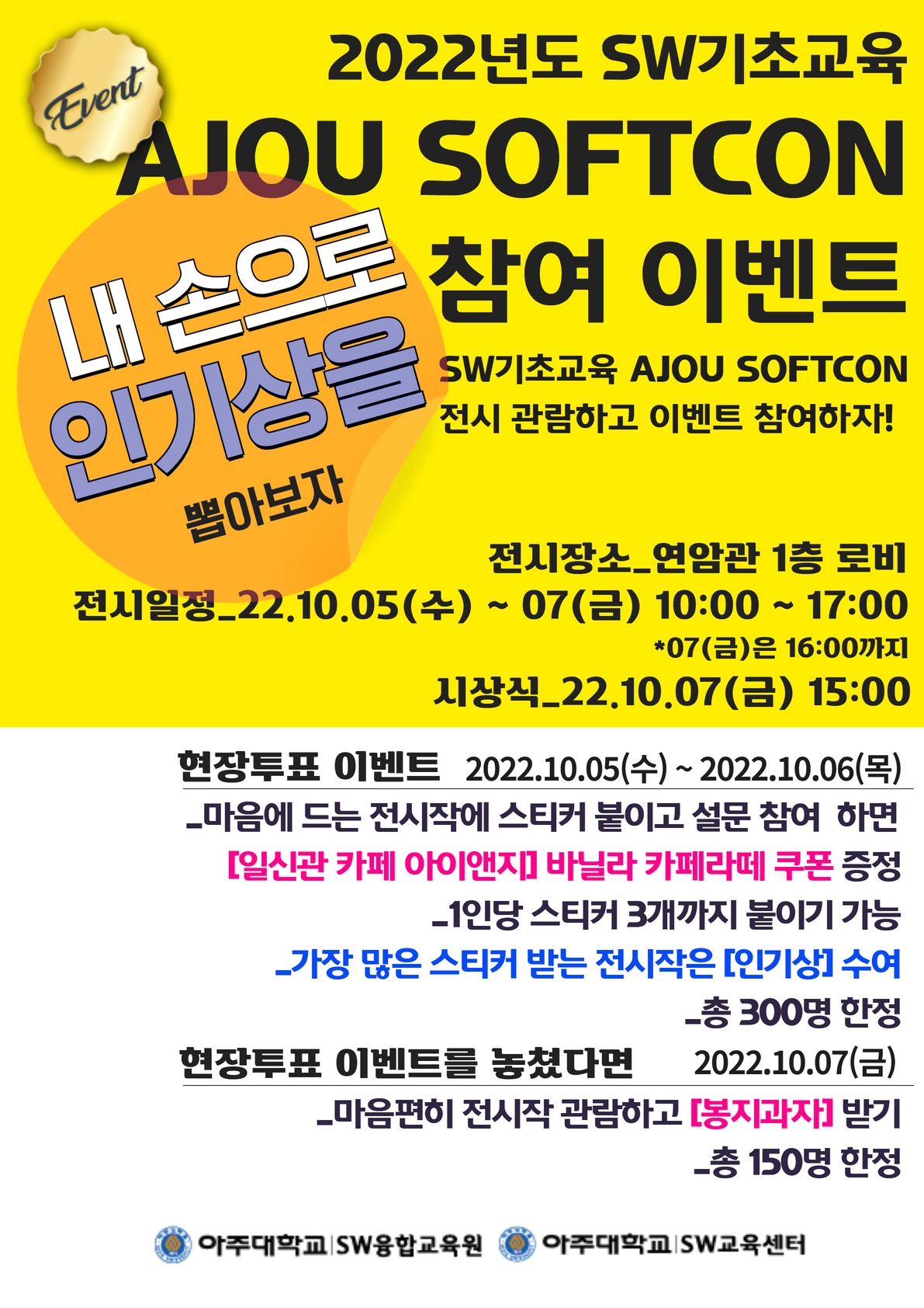 (전일재공지)[SW융합교육원/SW중심대학]2022학년도 SW기초교육 AJOU SOFTCON 개최(2022.10.05 ~ 2022.10.07)