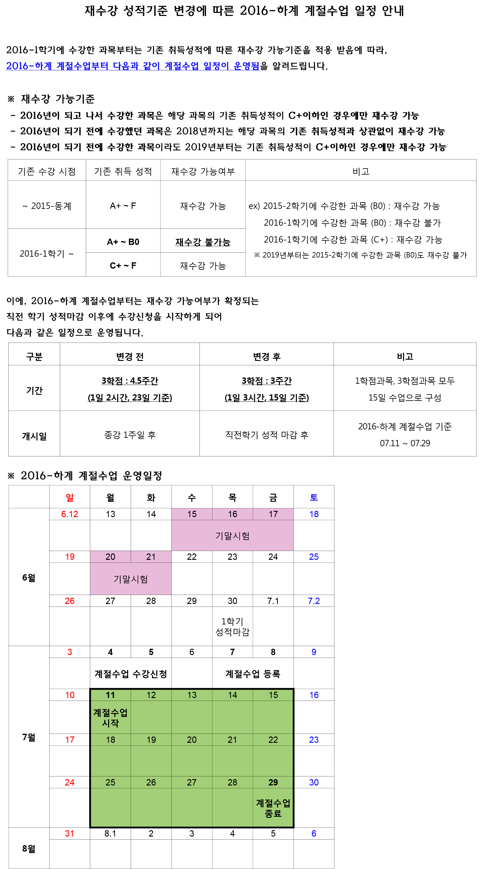 (학사과정) 2016-하계 계절수업 예비(책가방식) 수강신청 안내