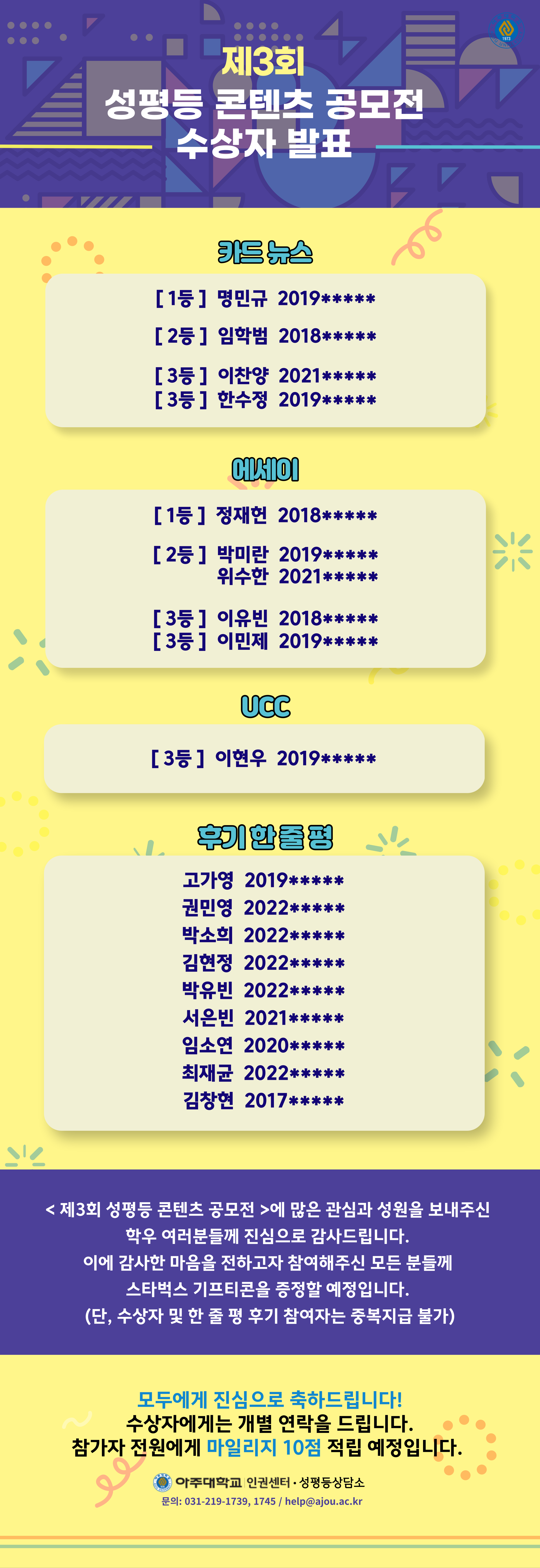 [성평등상담소] 제3회 성평등 콘텐츠 공모전 결과 발표